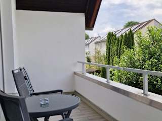 Die Ferienwohnung umfasst zwei Schlafzimmer, ein Badezimmer, Bettwäsche, Handtücher und einen Flachbild-TV. Weiterhin gibt es einen Essbereich sowie einen Balkon mit Blick auf den Garten.