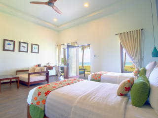 Das Mayang Sari Beach Resort in Lagoi bietet seinen Gästen ein einzigartiges und entspanntes Urlaubserlebnis in charmanten Chalets mit Strohdächern und privaten Terrassen. Genießen Sie den Blick auf den Garten oder das Meer und entspannen Sie im Wellnessbereich oder nutzen Sie das kostenfreie WLAN. Das Resort liegt in einer malerischen Umgebung und bietet eine Vielzahl von Aktivitäten wie Wassersport und Golf. Genießen Sie chinesische, indonesische und regionale Nudelgerichte in den verschiedenen Restaurants des Resorts.
