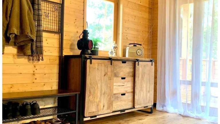 Drewniany dom na skraju lasu U Pana Szeptuna ist ein Ferienhaus, das sich durch einen Balkon und Gartenblick auszeichnet. Es bietet eine Terrasse, einen Garten sowie Zugang zu einer Gemeinschaftslounge und -küche.