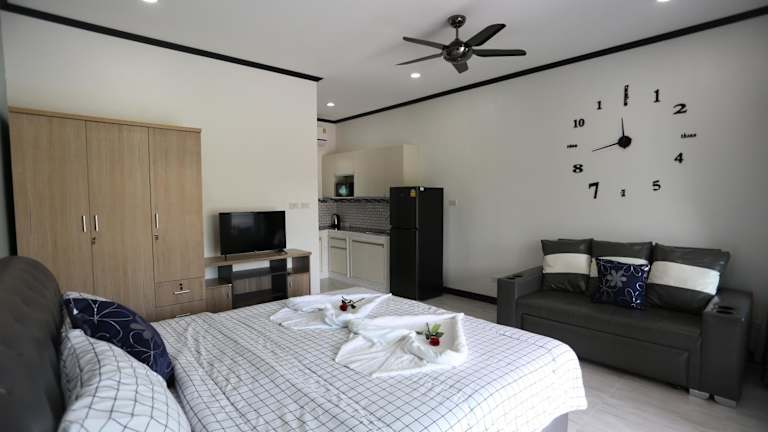 Die Gästezimmer im MB House Resort verfügen über eine Klimaanlage, einen Sitzbereich und einen Flachbild-TV mit Kabelkanälen. Jede Wohneinheit ist mit einer Küche und einem Essbereich ausgestattet und umfasst ein eigenes Badezimmer, das mit kostenlosen Pflegeprodukten, einer Dusche und einem Haartrockner ausgestattet ist. Zudem steht den Gästen ein Kühlschrank zur Verfügung.