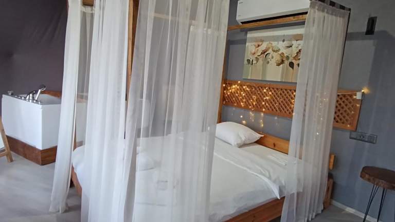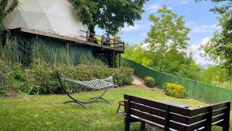 ME-GA Glamping bietet eine komfortable und gut ausgestattete Unterkunft mit einem Angebot an Annehmlichkeiten, einschließlich kostenlosem WLAN, Klimaanlage, einem Garten und einer Terrasse. Die Unterkunft verfügt über einen Whirlpool, der den Gästen zur Verfügung steht.