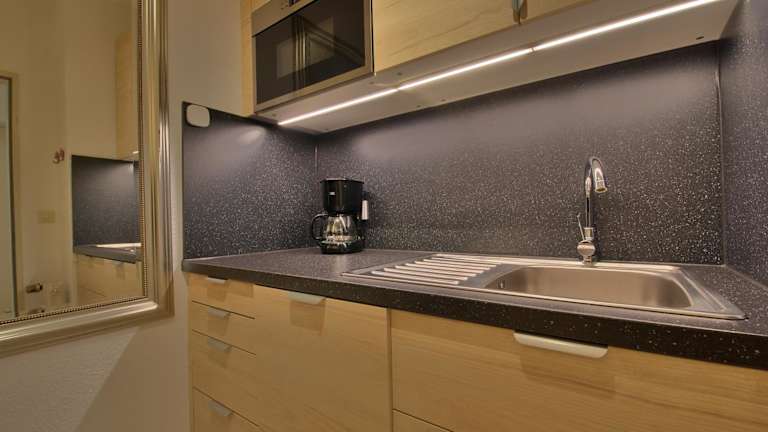 Die Ferienwohnung bietet ein Schlafzimmer und eine voll ausgestattete Küche mit Kühlschrank und Geschirrspüler. Annehmlichkeiten wie kostenloses WLAN, Flachbild-TV sowie Handtücher und Bettwäsche sind ebenfalls vorhanden.