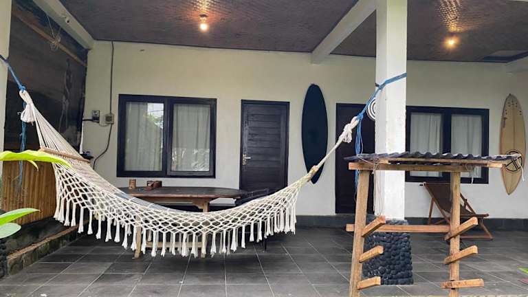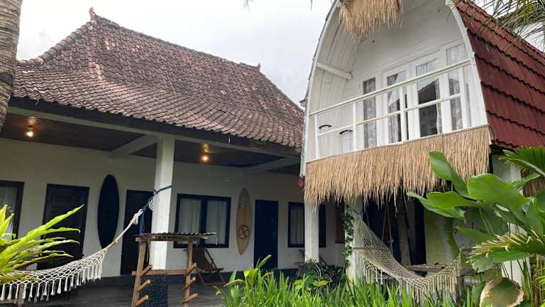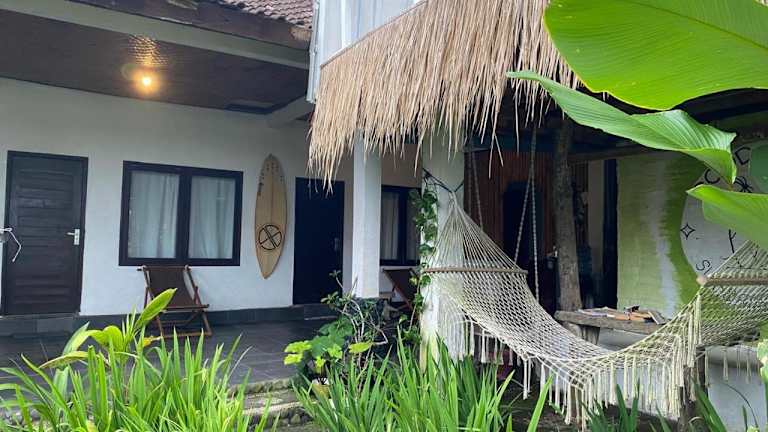 Medewi good vibes stay&surf bietet Übernachtungsmöglichkeiten mit einem Garten, einem kostenlosen Privatparkplatz und einer Terrasse. Die Unterkunft wird von einem privaten Gastgeber geführt und bietet eine Gemeinschaftsküche sowie kostenloses WLAN in allen Bereichen. Es gibt eine Mindestalter für den Check-in von 18 Jahren, während Haustiere erlaubt sind, möglicherweise jedoch Gebühren anfallen.