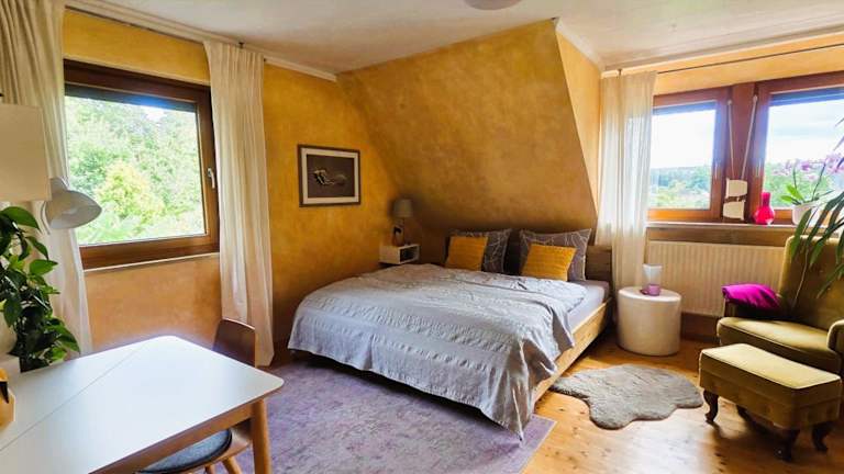 Die Unterkunft liegt in der Nähe von CCN CongressCenter Nürnberg, etwa 18 km entfernt, und bietet eine ruhige Umgebung mit Gartenblick. Nahegelegen sind auch die Meistersingerhalle und das Max-Morlock-Stadion, die jeweils etwa 19 km entfernt sind. Der Flughafen Nürnberg befindet sich in einer Entfernung von 33 km.