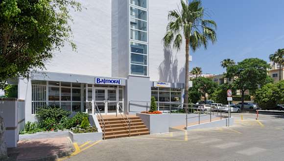 Das Hotel Balmoral in Benalmádena liegt an der Costa del Sol. Es liegt im Ort Benalmádena nur 50 Meter vom Strand entfernt und befindet sich ganz in der Nähe des Sporthafens Puerto Marina und dem Parque de las Palomas (Taubenpark), der Ideal für die Kleinsten ist. Dieses Hotel in Benalmádena ist ideal für Familien und junge Leute geeignet und besitzt 210 Zimmer, alle außenliegend, die auf 7 Etagen verteilt sind. Die meisten Zimmer bieten einen großartigen Blick auf das Mittelmeer. Das Hotel Balmoral verfügt über zwei Pools, einen für Kinder und einen für Erwachsene. Im Poolbereich finden sich zahlreiche Liegestühle, Tische und Sonnenschirme, die den Gästen zur Verfügung stehen. Das Angebot wird mit einer Bar abgerundet.