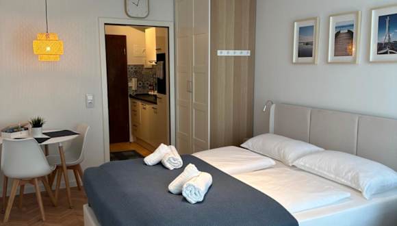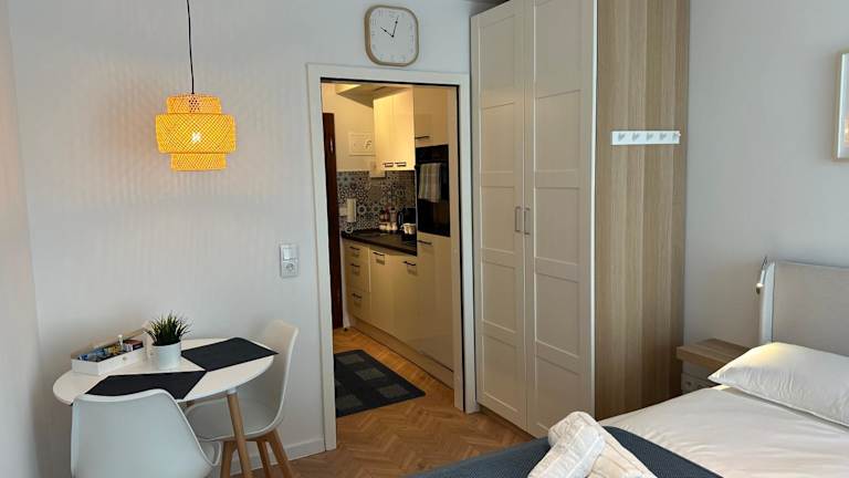 Es besteht die Möglichkeit, Speisen zur Unterkunft liefern zu lassen. Der Essbereich ist in der Wohnung integriert. Frühstück ist in Form von Behältern zum Mitnehmen verfügbar.
