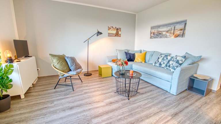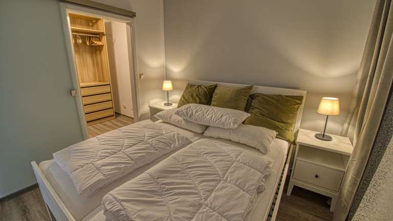 Die Ferienwohnung verfügt über ein Schlafzimmer, ein Wohnzimmer und ein Badezimmer mit einer Dusche. Zur Ausstattung gehören ein Flachbild-TV sowie eine gut ausgestattete Küche mit Kühlschrank und Geschirrspüler. Handtücher und Bettwäsche können gegen Aufpreis bereitgestellt werden.