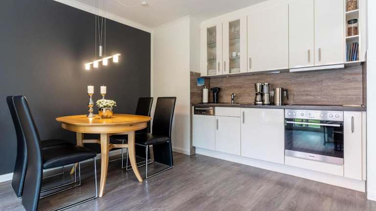 Die Ferienwohnung beinhaltet drei Schlafzimmer, die mit einem TV ausgestattet sind. Die voll ausgestattete Küche bietet Annehmlichkeiten wie Kühlschrank, Geschirrspüler, Waschmaschine, Ofen und Herdplatte. In der Unterkunft werden Handtücher und Bettwäsche bereitgestellt.