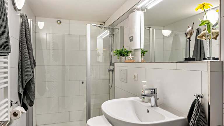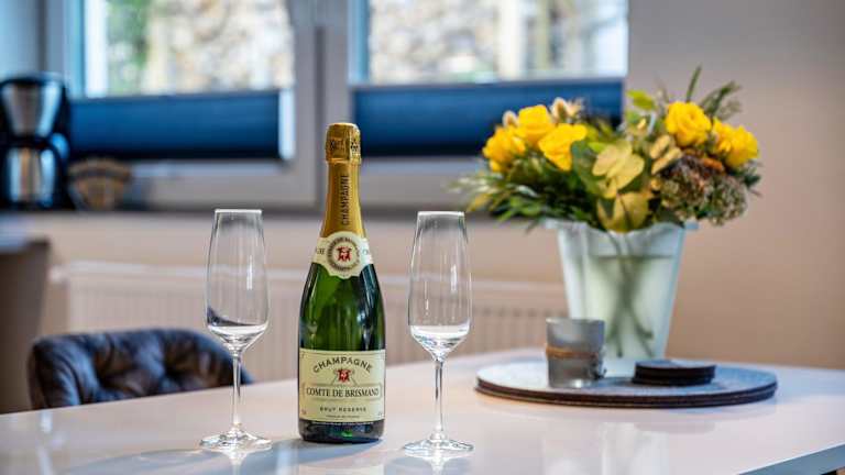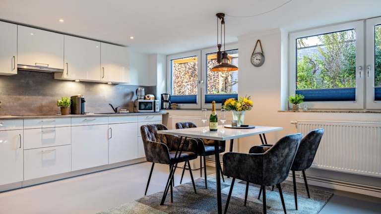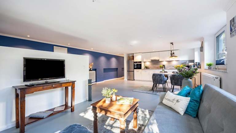 Die Ferienwohnung umfasst ein Schlafzimmer, ein Wohnzimmer und eine voll ausgestattete Küche mit Kühlschrank und Kaffeemaschine. Das Badezimmer ist mit einer Dusche und kostenlosen Pflegeprodukten ausgestattet. Handtücher und Bettwäsche werden zur Verfügung gestellt.