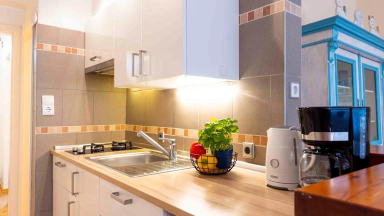 Die Wohnung umfasst ein Schlafzimmer, einen TV mit Satellitenkanälen sowie eine voll ausgestattete Küche. Die Küche bietet Annehmlichkeiten wie einen Kühlschrank, eine Mikrowelle, eine Waschmaschine, eine Herdplatte und einen Toaster.