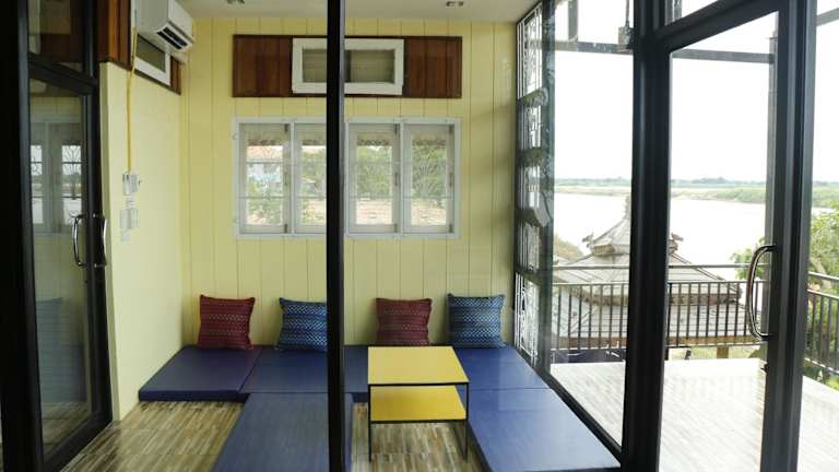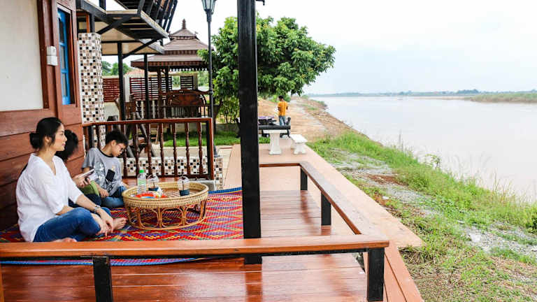 Verbringen Sie einen erholsamen Aufenthalt in der Mekong Tarawadee Villa in Tha Bo. Das Ferienhaus bietet eine idyllische Lage am Flussufer, eine gemütliche Atmosphäre und kostenfreies WLAN. Genießen Sie den Blick auf den Fluss und nutzen Sie die Gemeinschaftseinrichtungen wie den Garten, die Terrasse und die Gemeinschaftsküche. Das Ferienhaus verfügt über komfortable Schlafzimmer, eine gut ausgestattete Küche und moderne Badezimmer. Erkunden Sie die Umgebung beim Angeln oder lassen Sie sich einen Mietwagen arrangieren, um die Region zu erkunden.