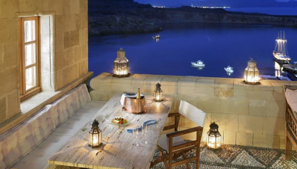 Das Hotel liegt an der Nordseite der antiken Akropolis und bietet einen atemberaubenden Blick auf das Meer. Es befindet sich im Dorf Lindos und ist etwa 45 km vom Hafen und Flughafen von Rhodos entfernt. Der Strand ist nur wenige Meter vom Hotel entfernt und das Stadtzentrum von Lindos ist ebenfalls leicht zu erreichen.