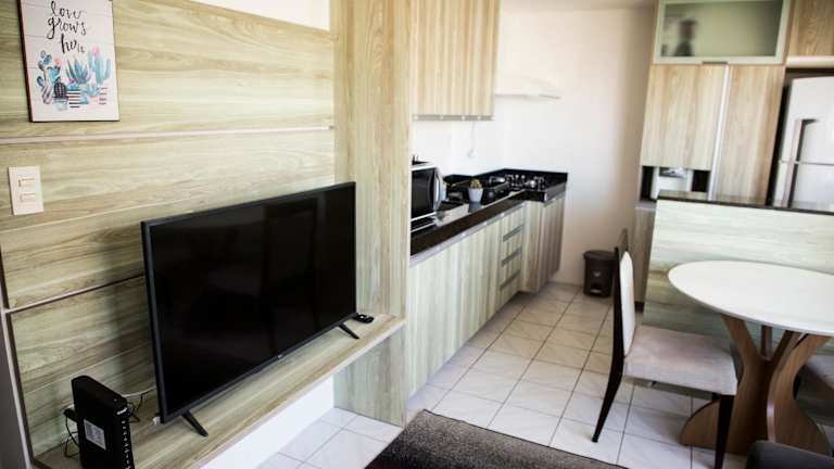 Das Melhor local da zona norte Sem Taxas bietet Ihnen die Möglichkeit, Ihre eigenen Mahlzeiten in der voll ausgestatteten Küche des Apartments zuzubereiten. Alternativ finden Sie in der Umgebung verschiedene Restaurants und Cafés, in denen Sie lokale und internationale Küche genießen können.