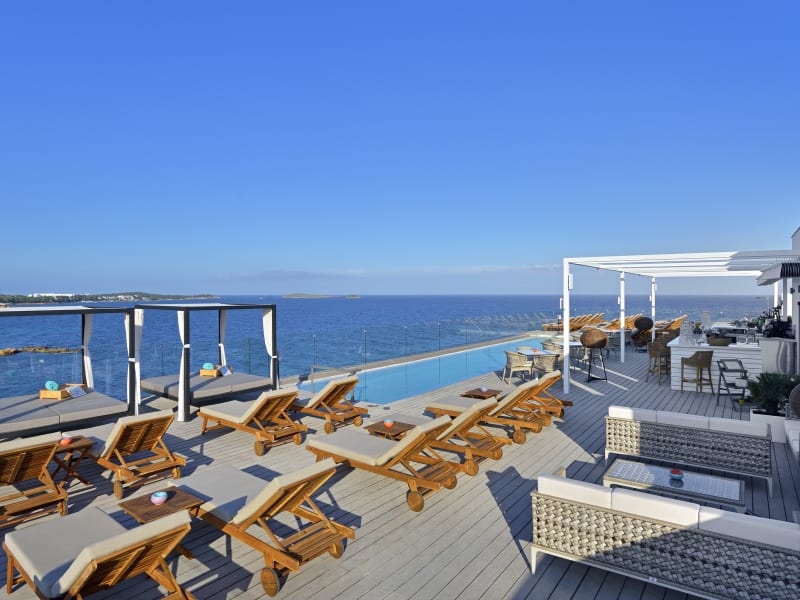Genieße köstliche Gerichte in unseren verschiedenen gastronomischen Bereichen: Llum Rooftop Bar & Restaurant, wo du die Wärme des Grills in den exquisiten Fisch- und Fleischgerichten spüren kannst, begleitet von einem guten Wein oder einem erfrischenden Cocktail, während sich das Mondlicht im ibizenkischen Meer spiegelt; Cape Nao, wo du die köstliche mediterrane Küche genießen kannst, begleitet von atemberaubenden Ausblicken und einer entspannten Atmosphäre; und schließlich unser Buffet-Restaurant Mosaico, wo du eine breite Auswahl an internationalen und lokalen Spezialitäten probieren kannst, mit einer vielfältigen Auswahl an frischen Produkten und einer Live-Kochstation.
