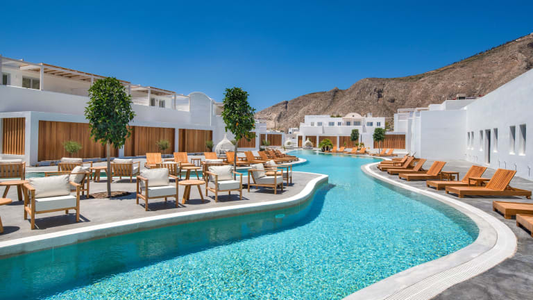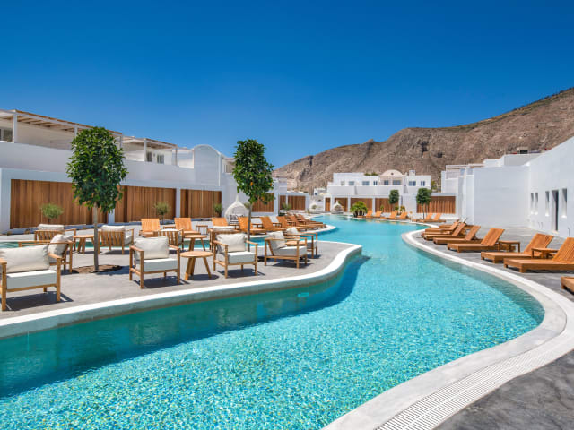Das Meltemi Blu - Adults Only in Perissa ist ein exklusives 5-Sterne-Hotel, das perfekt auf die Bedürfnisse erwachsener Gäste zugeschnitten ist. Hier erwartet Sie ein erstklassiger Service, ein saisonaler Außenpool und ein Fitnesscenter, um Ihnen einen unvergesslichen Aufenthalt zu bieten. Das Hotel verfügt über eine 24-Stunden-Rezeption, kostenfreies WLAN und einen Zimmerservice. Genießen Sie den Luxus der klimatisierten Zimmer mit Flachbild-Sat-TV, Kühlschrank und Kaffeemaschine. Einige Zimmer bieten zudem eine Terrasse und einen Wasserkocher. Starten Sie Ihren Tag mit einem köstlichen kontinentalen Frühstück und erkunden Sie dann die Strände Perissa und Perivolos, die nur wenige Gehminuten entfernt liegen.