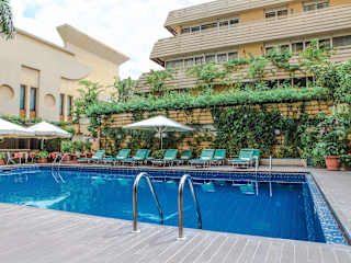 Das Hotel Memling in Kinshasa bietet Ihnen einen angenehmen Aufenthalt mit kostenfreiem WLAN und einem Außenpool. Genießen Sie den Komfort der klimatisierten Zimmer und den Blick auf den Pool. Beginnen Sie Ihren Tag mit einem leckeren Frühstück und entspannen Sie sich im Fitnesscenter oder auf der Sonnenterrasse. Das Hotel bietet auch eine Bar und ein Restaurant für Ihre kulinarischen Bedürfnisse. Der internationale Flughafen Ndjili ist nur 23 km entfernt, und das Hotel bietet einen Flughafentransfer an.