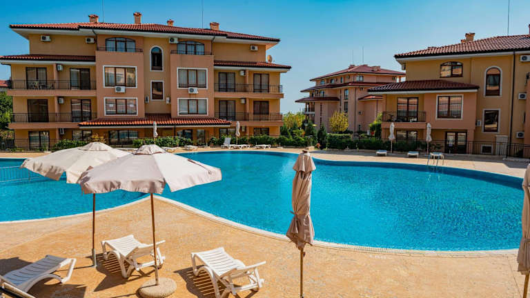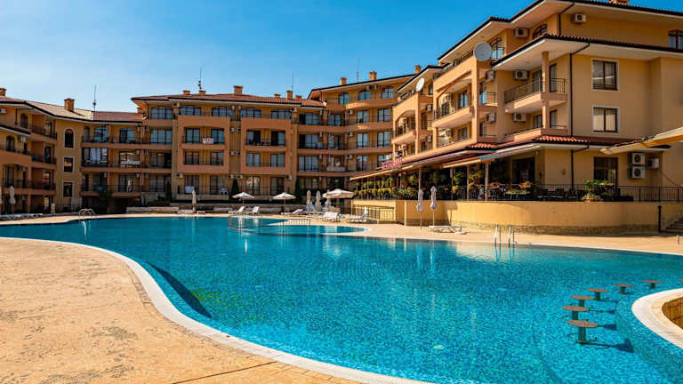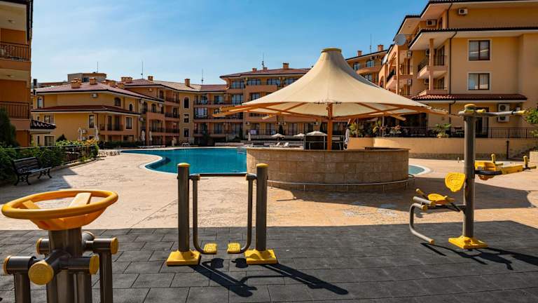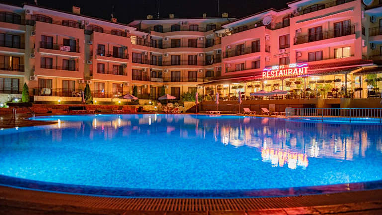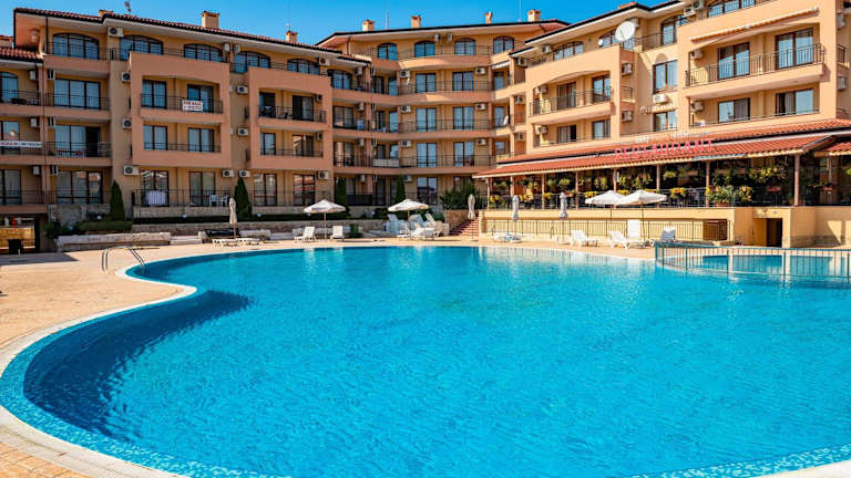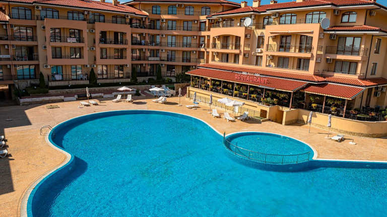 Die Menada Sky Dreams Apartments bieten eine komfortable Unterkunft mit einem Pool und einer günstigen Lage nur 200 m vom Strand von Saint Vlas entfernt. Die Apartments sind klimatisiert und verfügen über einen Balkon sowie eine voll ausgestattete Küchenzeile. In der Nähe finden Sie Geschäfte und Restaurants. Der Komplex bietet kostenfreie Liegestühle und Sonnenschirme am Pool sowie einen kleinen Pool und einen Spielplatz für Kinder. Die Umgebung bietet eine gute Anbindung an öffentliche Verkehrsmittel und verschiedene Attraktionen wie den Sonnenstrand, den Action Aqua Park und die UNESCO-geschützte Altstadt von Nessebar.