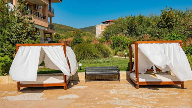 Die Menada Sky Dreams Apartments befinden sich in einer günstigen Lage, nur 200 m vom Strand von Saint Vlas entfernt. In unmittelbarer Nähe finden Sie Geschäfte und Restaurants, die bequem zu Fuß erreichbar sind. Eine Bushaltestelle ist ebenfalls nur 500 m entfernt. Der beliebte Sonnenstrand liegt 1,5 km entfernt und der Action Aqua Park ist in 3,5 km zu erreichen. Die UNESCO-geschützte Altstadt von Nessebar ist nur 8 km entfernt und definitiv einen Besuch wert.