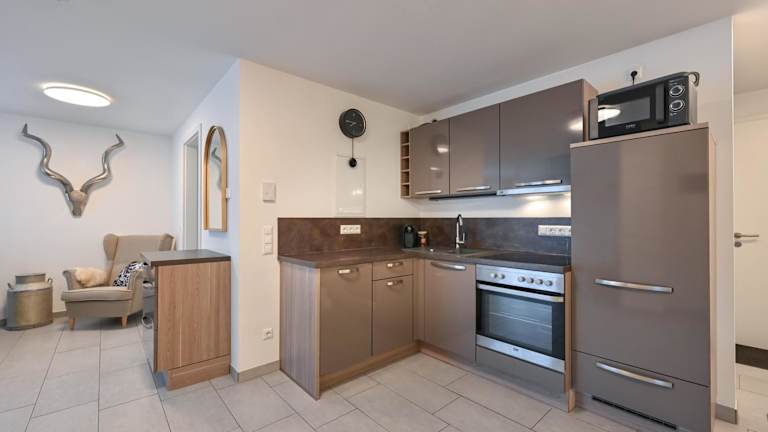 Die Ferienwohnung bietet 1 Schlafzimmer und verfügt über einen TV mit Kabelkanälen sowie eine voll ausgestattete Küche. Diese beinhaltet einen Kühlschrank, Geschirrspüler, Waschmaschine, Ofen und Mikrowelle. Handtücher und Bettwäsche werden bereitgestellt. Es handelt sich um eine Nichtraucherunterkunft, in der Haustiere erlaubt sind.