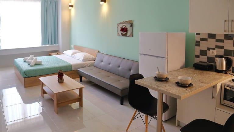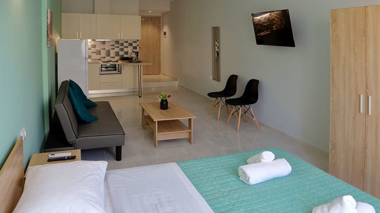 Die Wohneinheiten im Menta Studios sind mit einer Klimaanlage ausgestattet. Jedes Studio verfügt über einen Flachbild-TV und ein eigenes Badezimmer mit Dusche sowie kostenlosen Pflegeprodukten. Zusätzlich stehen ein Kühlschrank, ein Toaster und ein Wasserkocher zur Verfügung.