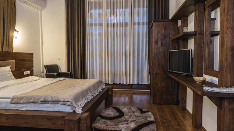 Die Zimmer im Mentor Resort sind mit einem Kleiderschrank, einem Balkon mit Bergblick und einem eigenen Badezimmer ausgestattet. Zur Ausstattung gehören ein Flachbild-TV, Bettwäsche und Handtücher. Jedes Zimmer verfügt zudem über einen Kühlschrank und einen Wasserkocher, während einige Zimmer mit einer Veranda oder einem Poolblick aufwarten.