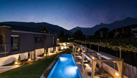Entspannen Sie in Ihrem eigenen Garten oder genießen Sie die Sonne auf den Sonnenliegen am gemeinsamen Pool. Der Außenpool bietet eine erfrischende Abkühlung an warmen Tagen. Wenn Sie die Umgebung erkunden möchten, können Sie die Gärten des Schlosses Trauttmansdorff besuchen oder einen Ausflug zu den Thermalbädern von Meran unternehmen. Jedes Apartment verfügt über einen Stellplatz in der Garage der Unterkunft, so dass Sie Ihr Auto sicher und bequem parken können.