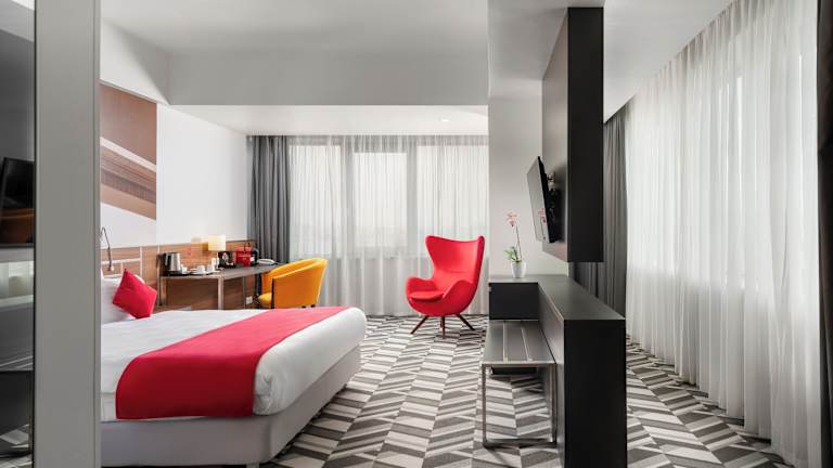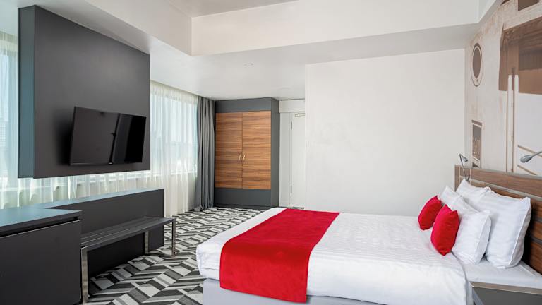 Das Hotel Mercure Bucharest Unirii befindet sich direkt am Unirii-Platz im Herzen von Bukarest. Die Lage ist ideal für Gäste, die die Stadt zu Fuß erkunden möchten. In der Nähe des Hotels gibt es viele Sehenswürdigkeiten, Einkaufsmöglichkeiten und Restaurants. Das Nationalstadion Arena befindet sich 4 km entfernt und der Parlamentspalast ist 1 km entfernt. Der internationale Flughafen Henri Coanda (Otopeni) ist in 30 Autominuten erreichbar und der Bahnhof Nord Bukarest ist 10 Autominuten vom Hotel entfernt.