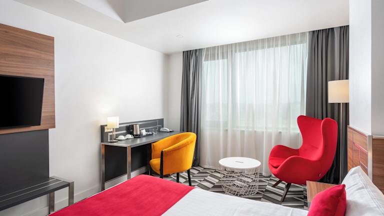 Das Hotel Mercure Bucharest Unirii bietet 97 gemütliche und komfortable Zimmer. Die Zimmer sind mit Bad oder Dusche/WC, Bademänteln, Flachbildschirm, Fön, Kaffee-/Teezubereiter, Schreibtisch, Telefon, Weckdienst, WLAN, Safe, Minibar und Klimaanlage ausgestattet. Zimmerservice steht gegen Gebühr zur Verfügung.