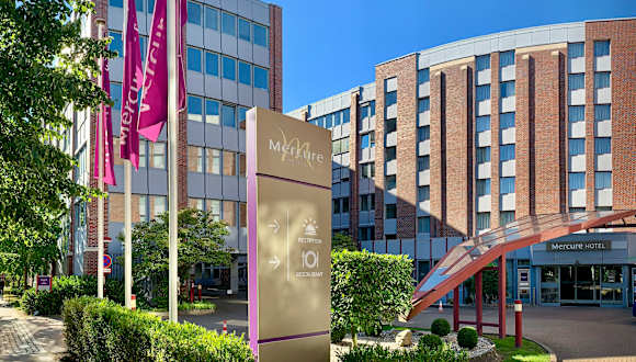 Das ****Mercure Hotel Hamburg am Volkspark liegt im hamburger Westen gegenüber der Trabrennbahn Bahrenfeld, nahe dem HSV Fußballstadion und der BarclaycsArena Hamburg. Anreise: Bhf Altona nur 4 km, Hbf/Zentrum 8 km, Flughafen 15 km. Per Auto erreichen Sie uns über die A7, Parken 13 Euro p.T. in der Tiefgarage nach Verfügbarkeit/ E-Landepunkte 100 Meter fußläufig.