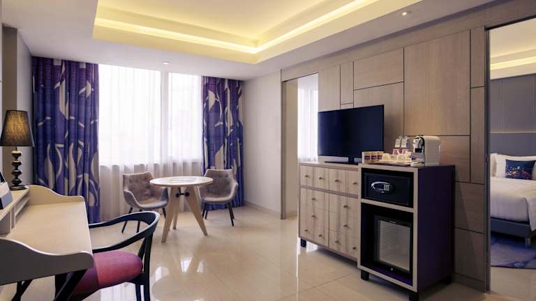 Die Zimmer im Mercure Jakarta Sabang sind modern und komfortabel eingerichtet. Jedes Zimmer verfügt über eine Klimaanlage, einen Sitzbereich, einen Flachbild-Kabel-TV, einen Wasserkocher, einen Kühlschrank und eine Minibar. Das private Badezimmer ist mit einer Dusche, kostenlosen Pflegeprodukten und einem Haartrockner ausgestattet. Handtücher und Bettwäsche werden bereitgestellt.