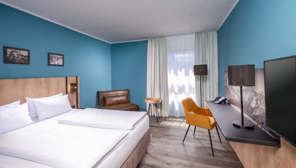 Im 4-Sterne Mercure Hotel München Neuperlach Süd haben Sie die Wahl zwischen Standard-Zimmern mit Queen-Size Bett, Doppelbett oder zwei Einzelbetten sowie Privilege-Zimmern mit Queen-Size Bett oder Queen-Size Bett plus Sofa. Alle 253 Zimmer haben kostenloses Wi-Fi. Ein Kind bis 12 Jahre übernachtet kostenlos in Ihrem Zimmer. Ihr Haustier ist bei uns willkommen (Gebühr 10 EUR/Nacht). Ein Flatscreen Fernseher, Telefon, Wassserkocher, Safe und ein Schreibtisch komplettieren das Zimmerinventar. In unseren Privilege Zimmern haben Sie gegen Aufpreis Nacht nicht nur mehr Platz, sondern auch auch eine befüllte Minibar sowie Bademantel und Badeschuhe im Zimmer.