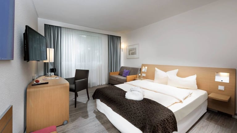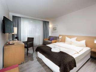 Die 100 Gästezimmer verfügen über ein renoviertes Bad/Dusche, sowie Föhn, Kaffee- & Teezubereitungsmöglichkeit, eine Klimaanlage, französisches Bett oder Twin Betten, Safe sowie teilweise einen Kühlschrank. Fragen Sie nach Zimmern mit Verbindungstüre oder den Business und Privilegezimmern zur Gartenseite. Für Familien bieten wir ein Zimmer mit 3tem Bett, bzw. Zimmer mit Verbindungstüre gerne an. Ein Telefon, SAT TV mit Flatscreen, ein SKY-Cinema Programm, sowie ein Schreibtisch mit großzügiger Arbeitsfläche gehört ebenfalls zur Ausstattung. Als Gast nutzen Sie das kostenfreie W-Lan im ganzen Haus!