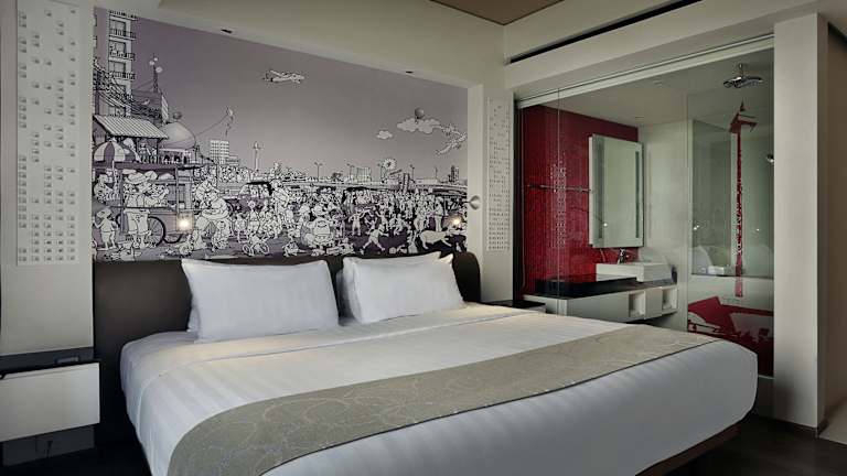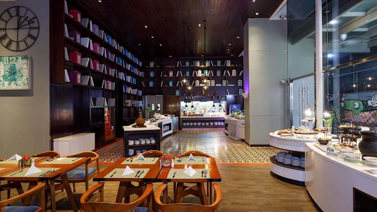 Das Hotel bietet verschiedene gastronomische Einrichtungen, darunter das Graffiti Restaurant, das internationale Küche serviert und ein tägliches Frühstücksbuffet anbietet. Die M & M Lounge Bar bietet erfrischende Getränke und in der Karumba Rooftop Bar können Sie beeindruckende Ausblicke auf Jakarta genießen und Live-DJ-Auftritte erleben.