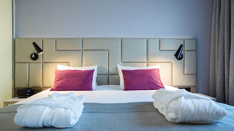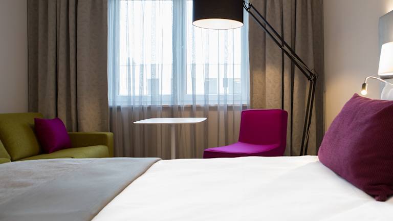 Die Zimmer sind mit einer Klimaanlage, Heizung, einem Doppelbett, einem Safe, einer Minibar und einer Tee-/Kaffeemaschine ausgestattet. Jedes Zimmer verfügt zusätzlich über ein eigenes Badezimmer mit Dusche und Badewanne sowie einen Haartrockner. Einige Zimmer bieten einen Stadtblick oder eine Terrasse. Alle Gästezimmer sind mit einem Flachbild-TV, einem Schreibtisch und kostenlosem WLAN ausgestattet. Das Hotel stellt auch rollstuhlgerechte Zimmer mit barrierefreien Bädern zur Verfügung.