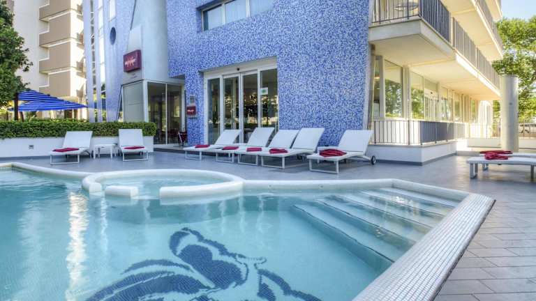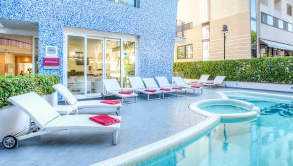 Das Mercure Rimini Lungomare bietet einen Außenpool und eine kleine Sonnenterrasse, auf der die Gäste entspannen und die Sonne genießen können. Es gibt auch einen Hydromassagebereich im Pool, der für zusätzliche Entspannung sorgt. Das Hotel stellt auch kostenfreie Fahrräder zur Verfügung, so dass die Gäste die Umgebung erkunden können.