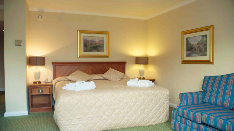 Die Hotelzimmer sind geräumig und klassisch eingerichtet. Sie verfügen über ein Doppelbett, ein Sofabett, einen Safe, eine Minibar und einen Schreibtisch. Zu den Annehmlichkeiten gehören eine Tee-/Kaffeemaschine, Hausschuhe sowie ein Fernseher mit Satelliten-/Kabelempfang. In den Badezimmern stehen eine Dusche und eine Badewanne, ein Haartrockner sowie Kosmetikartikel zur Verfügung. Viele Zimmer bieten zudem einen Balkon oder eine Terrasse.