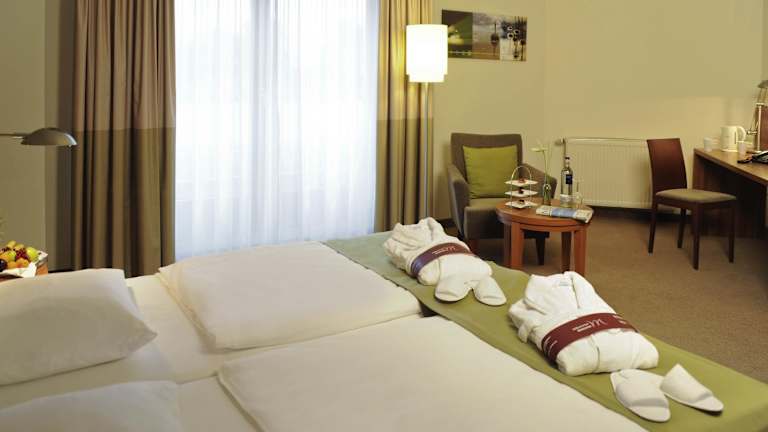 Die Zimmer sind modern und komfortabel eingerichtet und verfügen über Klimaanlage, Highspeed-Internetzugang und ein eigenes Bad mit Dusche und Badewanne. Ein Balkon ist in den meisten Zimmern vorhanden. Zur Ausstattung gehören auch ein Telefon, ein TV-Gerät, ein Safe sowie ein Minikühlschrank und eine Tee-/Kaffeemaschine. Familien- und Nichtraucherzimmer sind ebenfalls verfügbar. Rollstuhlgerechte Zimmer stehen zur Buchung bereit.