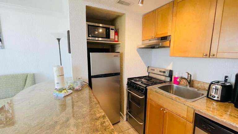 Das Apartment bietet eine voll ausgestattete Küche, in der Sie Ihre eigenen Mahlzeiten zubereiten können. Alternativ können Sie auch in einem der nahegelegenen Restaurants speisen und die köstliche Küche von Myrtle Beach genießen.