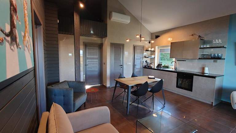 Die Villa im MĖTA verfügt über 3 komfortable Schlafzimmer, die einen erholsamen Schlaf bieten. Das Wohnzimmer bietet einen gemütlichen Raum zum Entspannen und die voll ausgestattete Küche ermöglicht es Ihnen, Ihre eigenen Mahlzeiten zuzubereiten. Das Badezimmer ist mit einer Dusche und kostenlosen Pflegeprodukten ausgestattet. Handtücher und Bettwäsche werden in der Villa gestellt, um Ihren Aufenthalt so angenehm wie möglich zu gestalten.