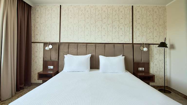 Die 220 Zimmer des Hotels sind luxuriös und modern eingerichtet. Sie verfügen über ein eigenes Bad, einen Flachbild-TV, einen Schreibtisch und kostenfreies WLAN. Zur weiteren Ausstattung gehören eine Minibar (gegen Gebühr), eine Klimaanlage und ein Safe.