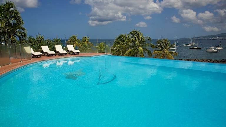 Das Hotel Bakoua Martinique liegt an der Westküste von Martinique, gegenüber der bezaubernden Bucht Fort-de-France Bay. Es bietet einen atemberaubenden Blick auf das Meer und ist von einer malerischen Landschaft umgeben. Der Flughafen ist nur etwa 20 Minuten entfernt, so dass Sie schnell und bequem ankommen können. Der Sandstrand ist nur wenige Schritte vom Hotel entfernt und bietet Liegen und Sonnenschirme gegen Gebühr.