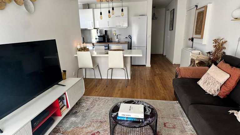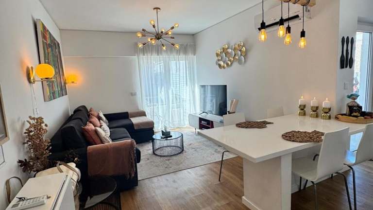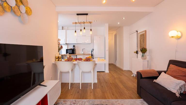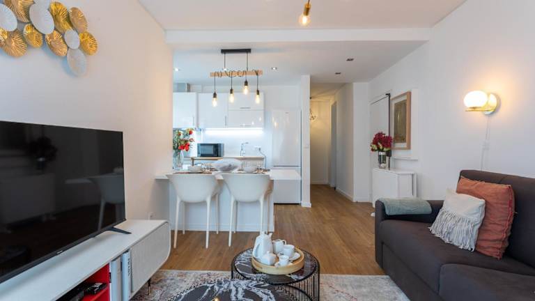 Die Ferienwohnung verfügt über Klimaanlage und besteht aus zwei Schlafzimmern, einem Wohnzimmer sowie einer voll ausgestatteten Küche mit Kühlschrank und Kaffeemaschine. Das Badezimmer ist mit einer Dusche und kostenlosen Pflegeprodukten ausgestattet. Handtücher und Bettwäsche werden gestellt.