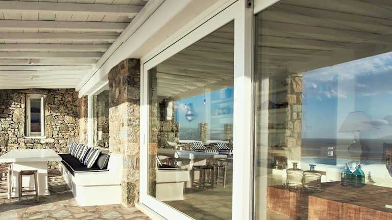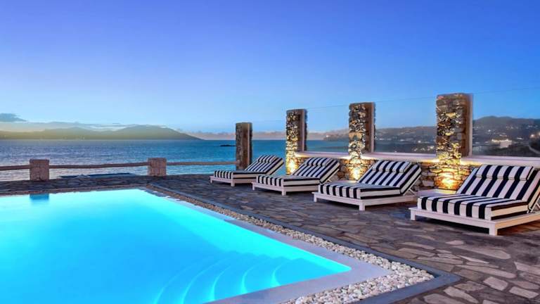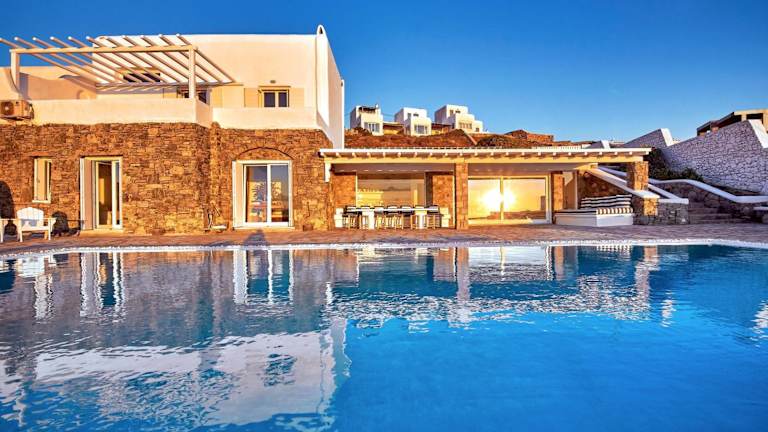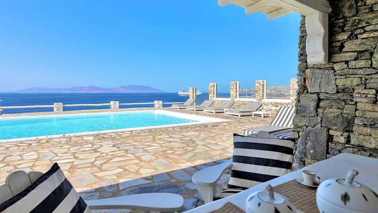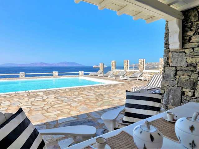 Erleben Sie einen unvergesslichen Aufenthalt in der MichaelAngelo Villa mit atemberaubendem Meerblick. Die klimatisierte Villa bietet 5 Schlafzimmer, ein Wohnzimmer, eine voll ausgestattete Küche und 5 Badezimmer. Entspannen Sie am Außenpool und genießen Sie die Privatsphäre der Terrasse und des Balkons. Die Villa liegt in der Nähe von Ornos und Korfos und bietet kostenfreie Privatparkplätze. Besuchen Sie die Windmühlen von Mykonos und das Archäologische Museum, die nur eine kurze Fahrt entfernt sind.