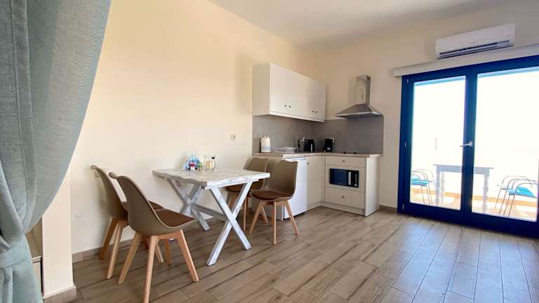 Michail Suites Afiartis Karpathos bietet verschiedene Wohneinheiten mit Balkon und Meerblick. Jede Suite enthält eine gut ausgestattete Küchenzeile, einen Flachbild-TV sowie ein eigenes Badezimmer mit Dusche und kostenlosen Pflegeprodukten. WLAN steht in der gesamten Unterkunft kostenfrei zur Verfügung.