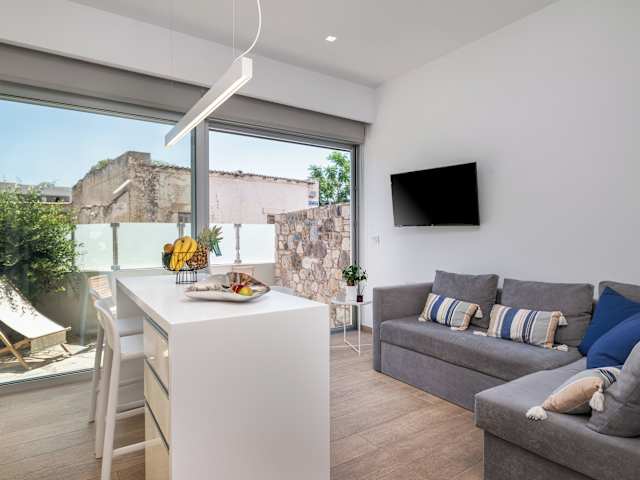Die Ferienwohnung umfasst 1 Schlafzimmer, ein Wohnzimmer, eine voll ausgestattete Küche mit Kühlschrank und Kaffeemaschine sowie ein Badezimmer mit Dusche und kostenlosen Pflegeprodukten. Zudem werden Handtücher und Bettwäsche bereitgestellt. Die Unterkunft bietet schallisolierte Zimmer und Klimaanlage.
