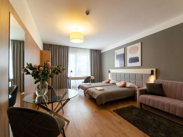 Die Micro Apartments Kazou Residence in Warschau bieten Ihnen eine komfortable Unterkunft mit modernen Annehmlichkeiten. Genießen Sie den Blick auf den Garten und profitieren Sie von kostenfreiem WLAN. Das Restaurant vor Ort und das reichhaltige Frühstücksbuffet sorgen für Ihr leibliches Wohl. Das Hotel bietet zudem praktische Einrichtungen wie einen Friseur und ein Businesscenter. Erkunden Sie die Stadt mit einem Fahrrad, das Sie direkt in der Unterkunft ausleihen können. Die Lage ist ideal, um Sehenswürdigkeiten wie das jüdische Ghetto-Denkmal und das Museum des Warschauer Aufstandes zu besuchen. Mit öffentlichen Verkehrsmitteln oder einem kostenpflichtigen Flughafentransfer gelangen Sie bequem zum Flughafen Chopin-Bahnhof Warschau.