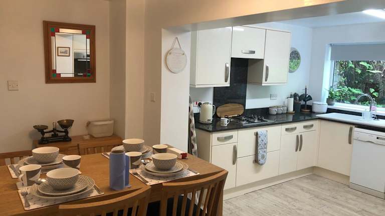 Das Ferienhaus verfügt über zwei Schlafzimmer sowie einen Wohnbereich mit einem Flachbild-TV, der Satellitenkanäle empfangen kann. Es gibt eine voll ausgestattete Küche mit Kühlschrank und Geschirrspüler sowie ein Badezimmer mit Dusche. Zur Ausstattung gehören auch Bettwäsche, Handtücher und Wäsche, die gemäß den Richtlinien der örtlichen Behörden gewaschen werden.