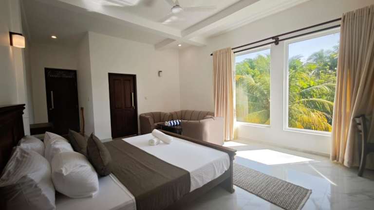 Die Mihira Gedara Apartments befinden sich in Unawatuna, einer beliebten Küstenstadt in Sri Lanka. Die Umgebung ist bekannt für ihre atemberaubenden Strände und die vielfältige Natur. In der Nähe des Hotels finden Sie beliebte Strände wie Mihiripenna, Dalawella und Unawatuna, die sich perfekt zum Entspannen und Sonnenbaden eignen. Die Umgebung bietet auch Möglichkeiten zum Radfahren und Erkunden der malerischen Landschaft. Der Flughafen Koggala liegt nur 6 km entfernt und bietet eine bequeme Anreisemöglichkeit.
