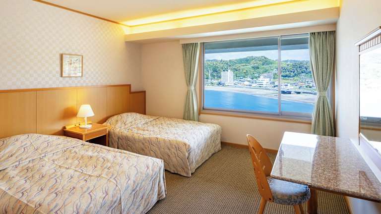 Die klimatisierten Zimmer im Mikazuki Sea-Park Hotel Awa Kamogawa sind mit einem Kleiderschrank, einem Wasserkocher, einem Kühlschrank, einem Safe und einem Flachbild-TV ausgestattet. Jedes Zimmer verfügt über ein eigenes Badezimmer mit einer Dusche. Bettwäsche und Handtücher sind ebenfalls vorhanden.
