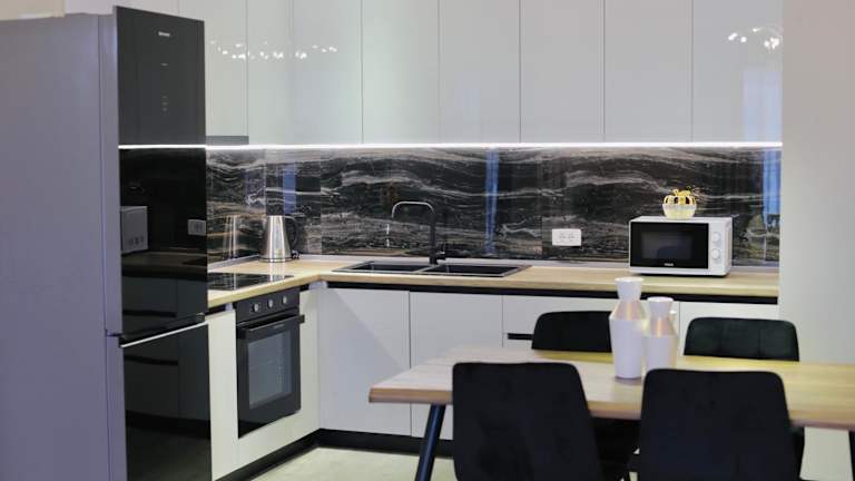 Die Wohnung verfügt über drei Schlafzimmer, zwei Badezimmer mit Bidet, Dusche und kostenlosen Pflegeprodukten. Zudem ist die Küche mit einem Kühlschrank, einem Ofen und einer Mikrowelle ausgestattet. Ein Haartrockner ist ebenfalls vorhanden.